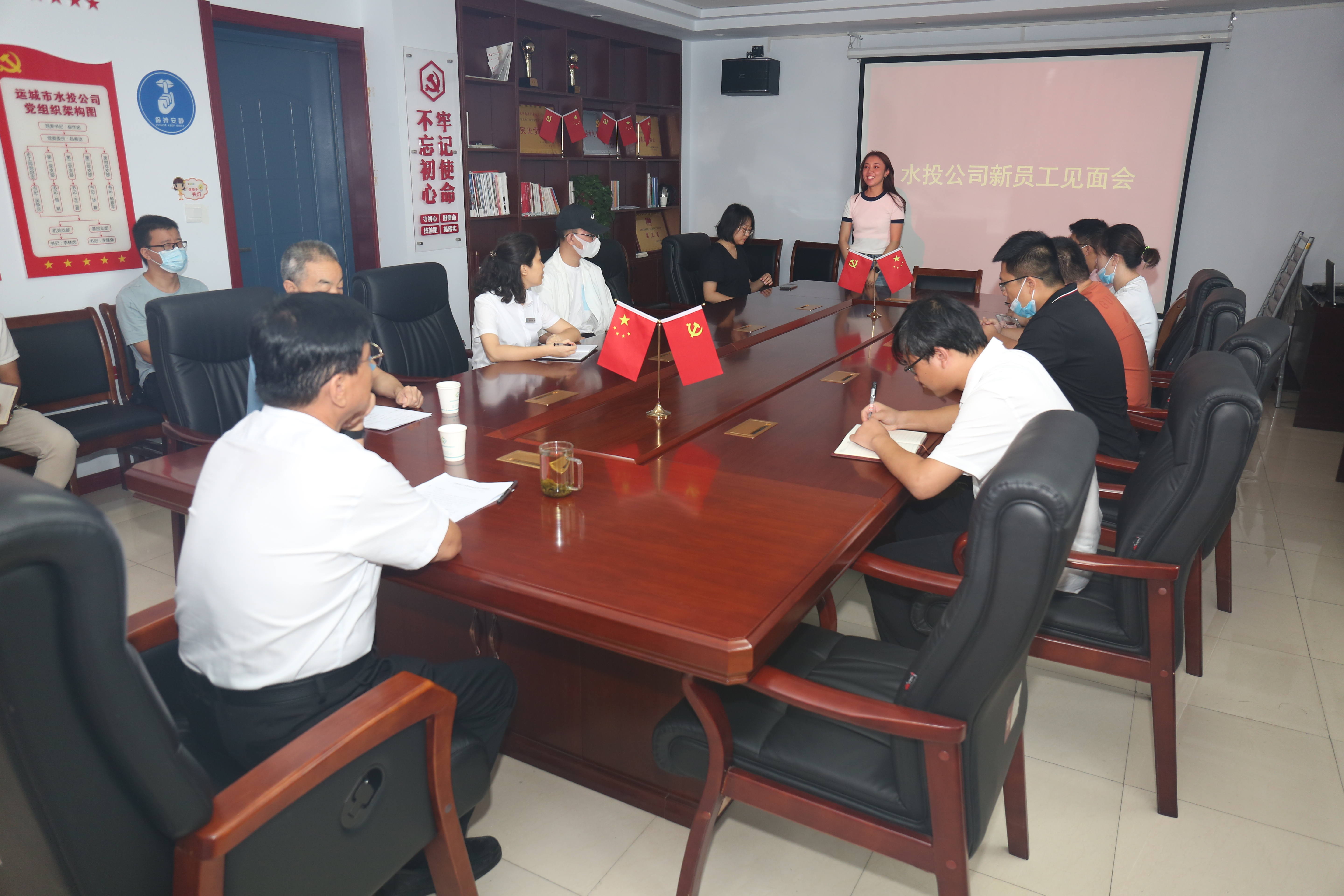 會(huì)上新入職員工依次做了自我介紹。副總經(jīng)理呂希汶宣布了領(lǐng)導(dǎo)班子對(duì)入職員工的初步崗位安排。崔作銘作重要講話,對(duì)新入職員工提出四點(diǎn)要求:一是要講政治,站穩(wěn)立場;二是要講學(xué)習(xí),提升素質(zhì);三是要講規(guī)矩,嚴(yán)守法紀(jì);四是要講奉獻(xiàn),擔(dān)當(dāng)作為。希望新員工珍惜工作崗位,發(fā)揚(yáng)“能吃苦,肯干事”的工作作風(fēng),形成“比學(xué)趕超,多講奉獻(xiàn)”的精神狀態(tài),在公司黨委的堅(jiān)強(qiáng)領(lǐng)導(dǎo)下,全力以赴,不負(fù)韶華,不負(fù)使命,做學(xué)習(xí)鉆研的模范、做遵章守紀(jì)的模范、做苦干實(shí)干的模范,為公司實(shí)現(xiàn)做大做優(yōu)做強(qiáng)高質(zhì)量發(fā)展目標(biāo)做出自己應(yīng)有的貢獻(xiàn)。