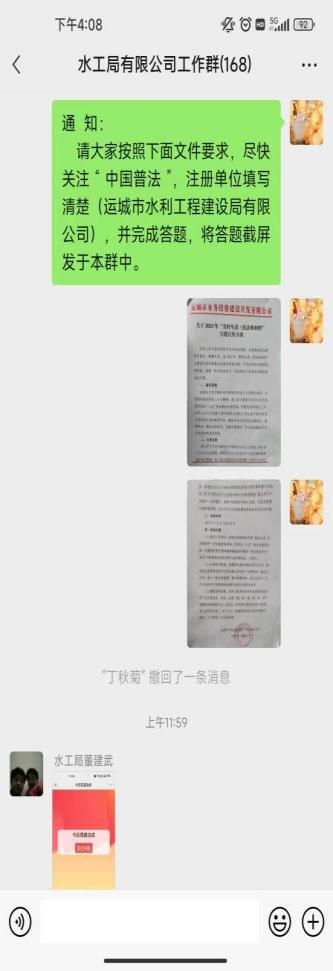 為加大《民法典》宣傳,努力讓每一名干部職工走進(jìn)民法典、了解民法典、運(yùn)用民法典,切實(shí)增強(qiáng)廣大干部職工的法治意識和法治信仰,5月29日運(yùn)城市水利工程建設(shè)局有限公司組織干部職工開展2023年“美好生活•民法典相伴”主題活動?;顒蝇F(xiàn)場傳達(dá)了運(yùn)城市水務(wù)投資建設(shè)開發(fā)有限公司《關(guān)于2023年“美好生活•民法典相伴”主題宣傳方案》,并向大家介紹了民法典的重要意義?;顒又懈刹柯毠しe極關(guān)注“中國普法”,注冊賬號并進(jìn)行了答題。此次活動激發(fā)干部職工主動學(xué)習(xí)法律知識,增強(qiáng)了用法治思維和法治方式解決問題的能力。