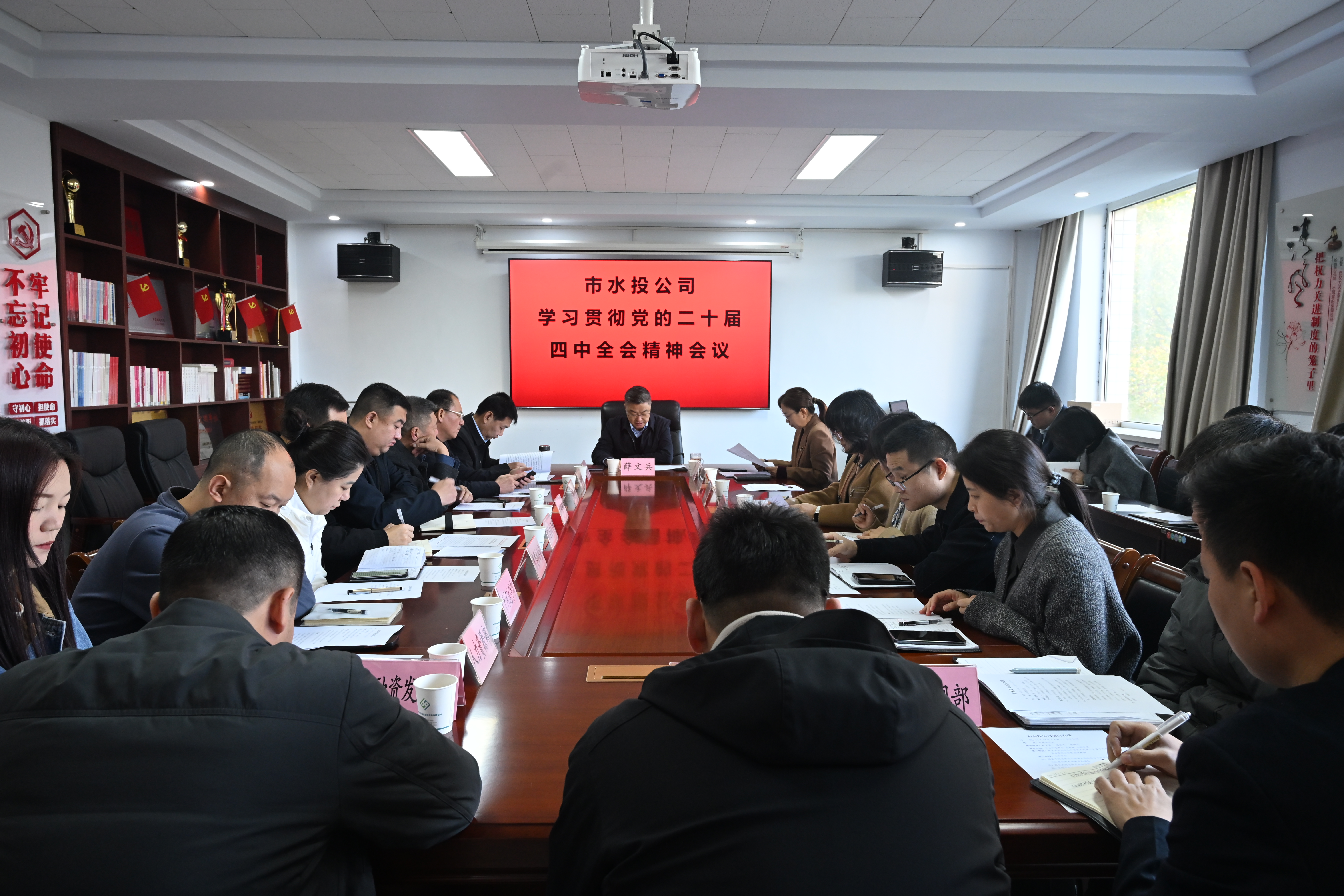 10月27日上午,董事長薛文兵主持召開學(xué)習(xí)貫徹黨的二十屆四中全會精神會議,專題學(xué)習(xí)黨的四中全會精神,結(jié)合公司經(jīng)營發(fā)展實際部署落實舉措??偨?jīng)理楊素平、紀(jì)委書記尚曉文,公司中層、各子公司負責(zé)人參加。