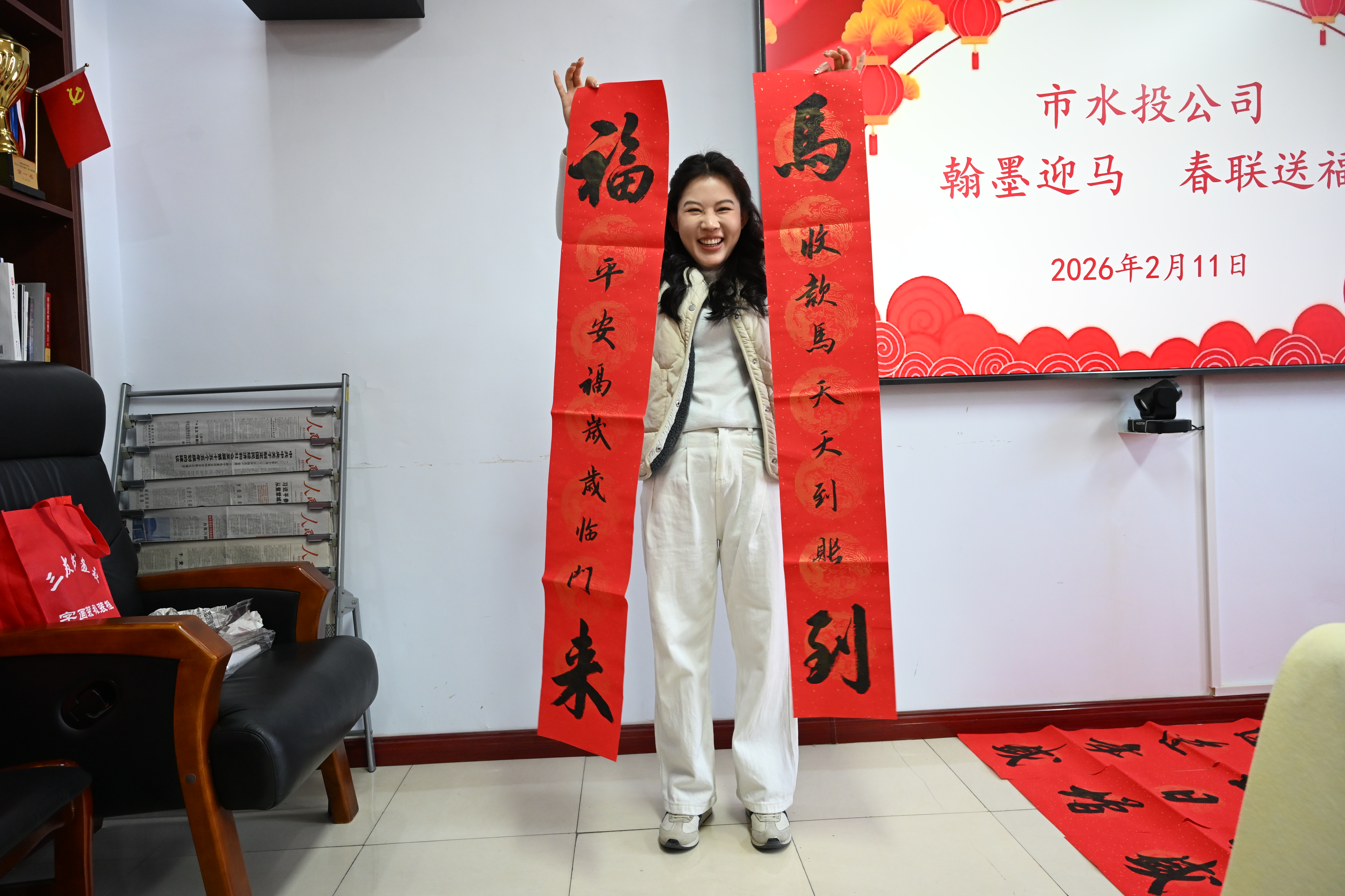 新春將至,年味漸濃。為喜迎2026年馬年春節(jié),進(jìn)一步豐富職工精神文化生活,弘揚(yáng)中華優(yōu)秀傳統(tǒng)文化,2月11日,市水投公司舉辦了“翰墨迎馬 春聯(lián)送福”春節(jié)送春聯(lián)活動(dòng),為廣大干部職工送上充滿傳統(tǒng)文化韻味的新春?jiǎn)柡颉?