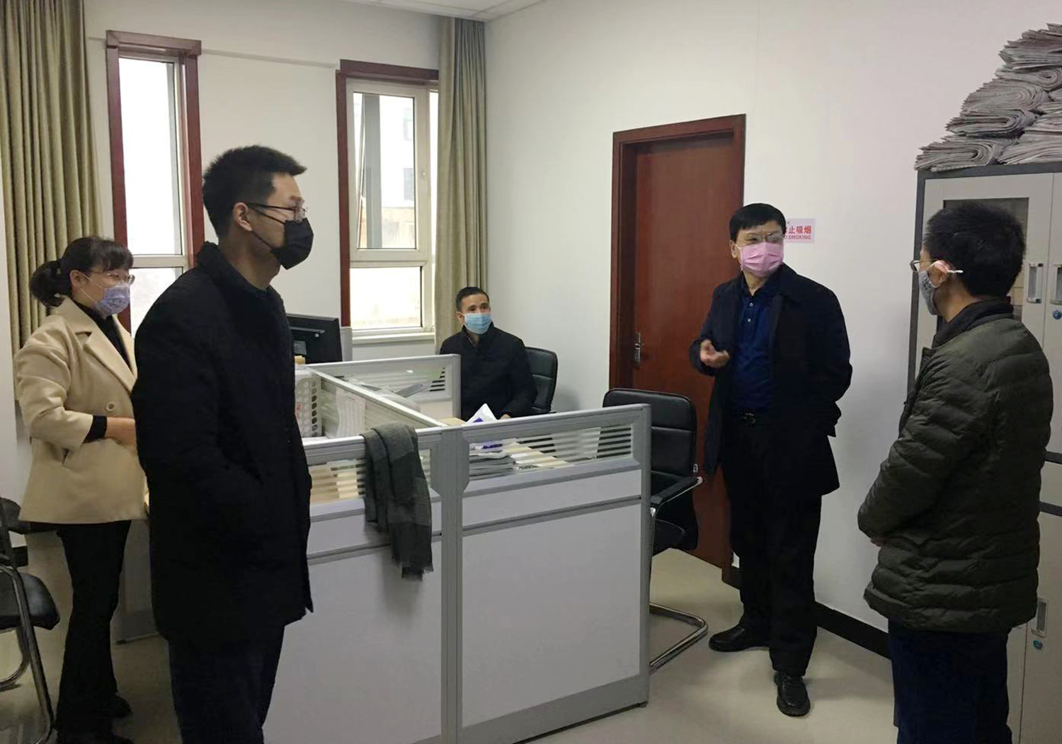 范永勝同志對往來人員登記表進(jìn)行了詳細(xì)查看,要求工作人員要加強(qiáng)防范意識,做好消菌殺毒、通風(fēng)換氣等必要措施。