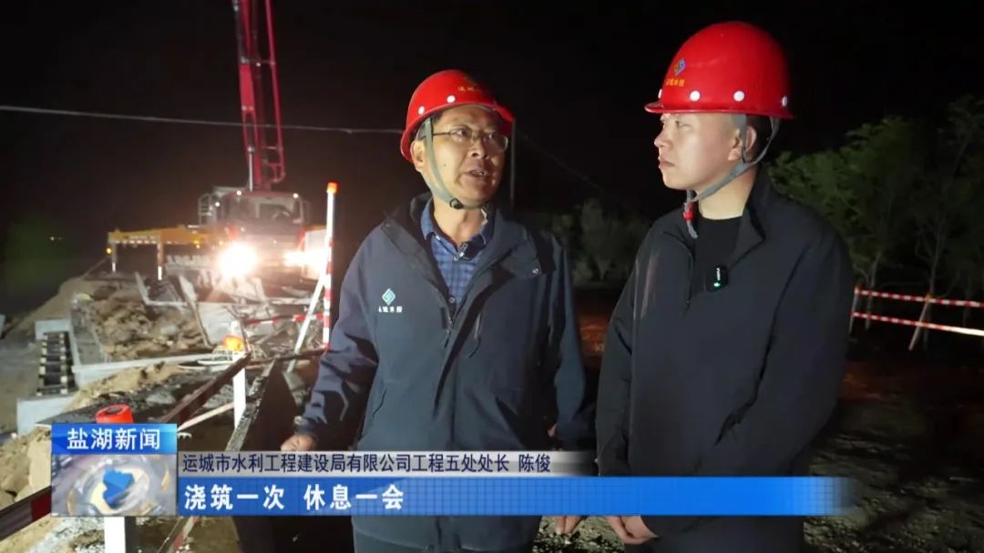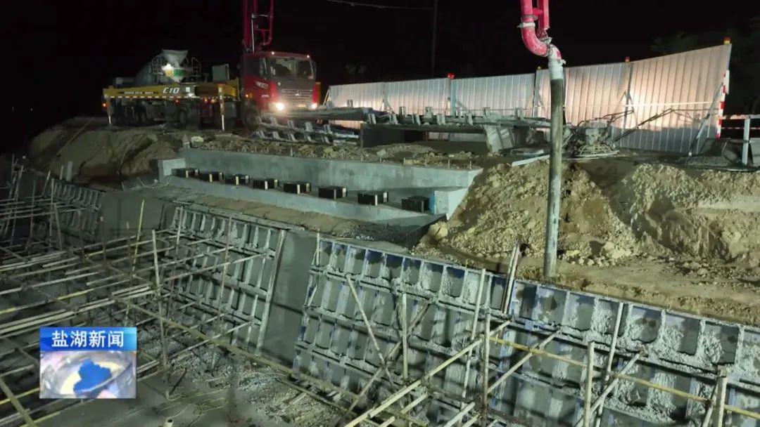 現(xiàn)在是4月28日晚上11時(shí)30分,在我身后,姚暹渠鹽湖段最后一部分水泥板正在進(jìn)行澆筑。澆筑完成后,全長24.9公里的姚暹渠鹽湖段主體渠道將實(shí)現(xiàn)合龍,形成完整的過水通道,標(biāo)志著工程迎來關(guān)鍵的階段性勝利。